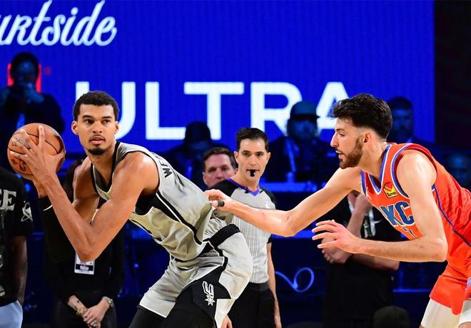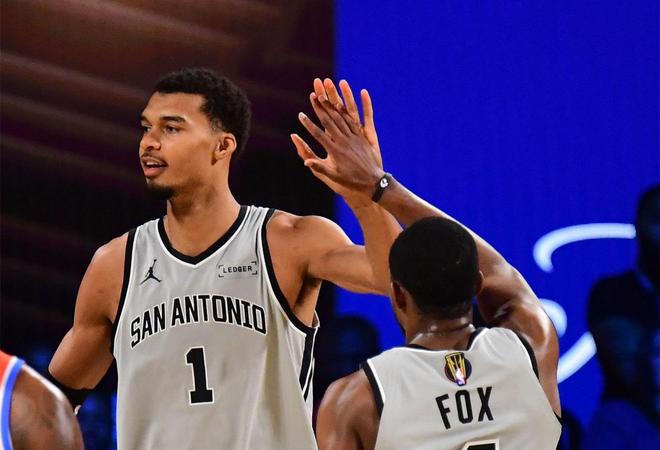 比赛时间还剩1分18秒,瓦塞尔第二罚不中,但是文班亚马身高臂长抢到进攻篮板,还制造亚历山大犯规,他两罚全中,帮助马刺105比101领先4分。在最后的比赛时间里,双方进行了“点球大战”,文班亚马4罚2中。所幸,雷霆霍姆格伦也罚丢了一球。最后时刻,杰伦·威廉姆斯在仅剩1.5秒的情况下故意罚丢第二球,卡鲁索高难度补篮不中。马刺非常惊险地赢下比赛。