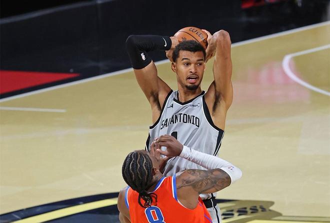 马刺主帅米奇·约翰逊在这一战对文班亚马的上场时间进行了限制,并且让他替补出战。马刺在首节打得比较被动,卫冕冠军雷霆在本赛季非常强势,这场比赛之前他们取得了24胜1负的战绩,并且收获了创队史纪录的16连胜。